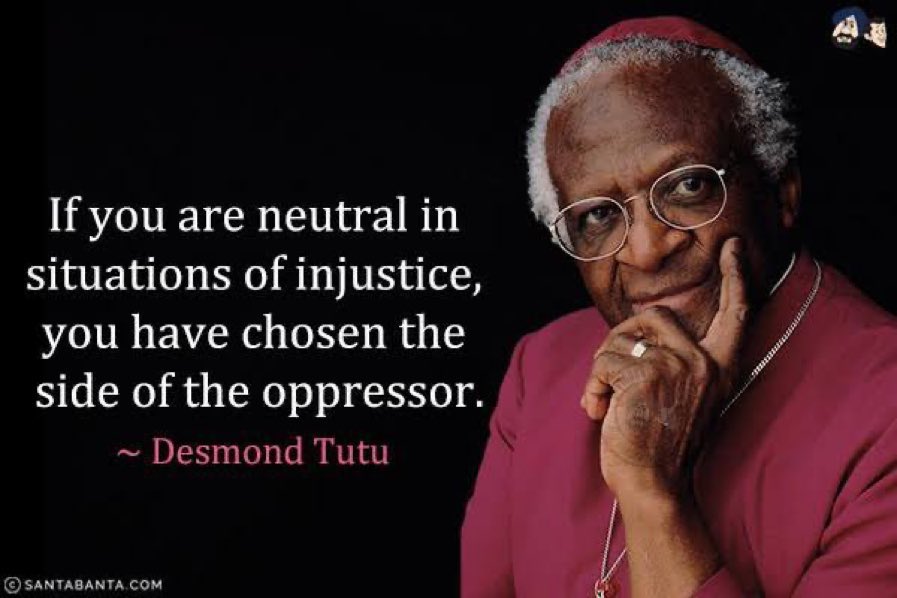 If you are neutral in situations of injustice, you have chosen the side of the oppressor.